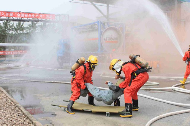 6月21日上午,9時(shí)40分,江山股份氯氣站一輛裝有20噸液氯的槽罐車在接卸液氯作業(yè)時(shí),管道“發(fā)生”氯氣泄漏,氯氣向周邊擴(kuò)散,影響了附近企業(yè)和居民的人身安全……這是南通市氯氣泄漏事故應(yīng)急綜合演練中的一幕。 由市政府主辦、江山股份承辦的南通市氯氣泄漏事故應(yīng)急綜合演練是2012年南通市安全生產(chǎn)月的“重頭戲”, 此次應(yīng)急演練重在提高政府、職能部門、企業(yè)應(yīng)對(duì)危險(xiǎn)化學(xué)品事故的應(yīng)急處置能力,最大限度減少因安全生產(chǎn)事故給企業(yè)和人民群眾造成的財(cái)產(chǎn)損失和人員傷亡。 由于氯氣是具有刺激性氣味的有毒氣體,可以溶解于水,因此應(yīng)急處理主要是通過噴灑形成水霧的方法來降低氯氣濃度,控制擴(kuò)散范圍?,F(xiàn)場用紅色煙霧代替黃綠色氯氣。演練中,市安監(jiān)、公安、消防、環(huán)保、質(zhì)監(jiān)、衛(wèi)生、氣象等部門積極聯(lián)動(dòng),各司其職,氣象部門提供風(fēng)力、溫度、濕度等實(shí)時(shí)數(shù)據(jù),環(huán)保部門負(fù)責(zé)空氣中氯氣含量檢測(cè),公安負(fù)責(zé)交通管制和疏散救援……僅用了不到40分鐘即圓滿完成了泄漏源堵漏和周邊企業(yè)及居民的疏散工作,充分展示并檢驗(yàn)了市政府、職能部門及企業(yè)應(yīng)對(duì)危險(xiǎn)化學(xué)品事故的應(yīng)急處置能力。 副市長徐輝擔(dān)任現(xiàn)場總指揮,并對(duì)演練做了綜合點(diǎn)評(píng)。江山股份董事長李大軍觀摩現(xiàn)場演練,總經(jīng)理薛健任現(xiàn)場副指揮。