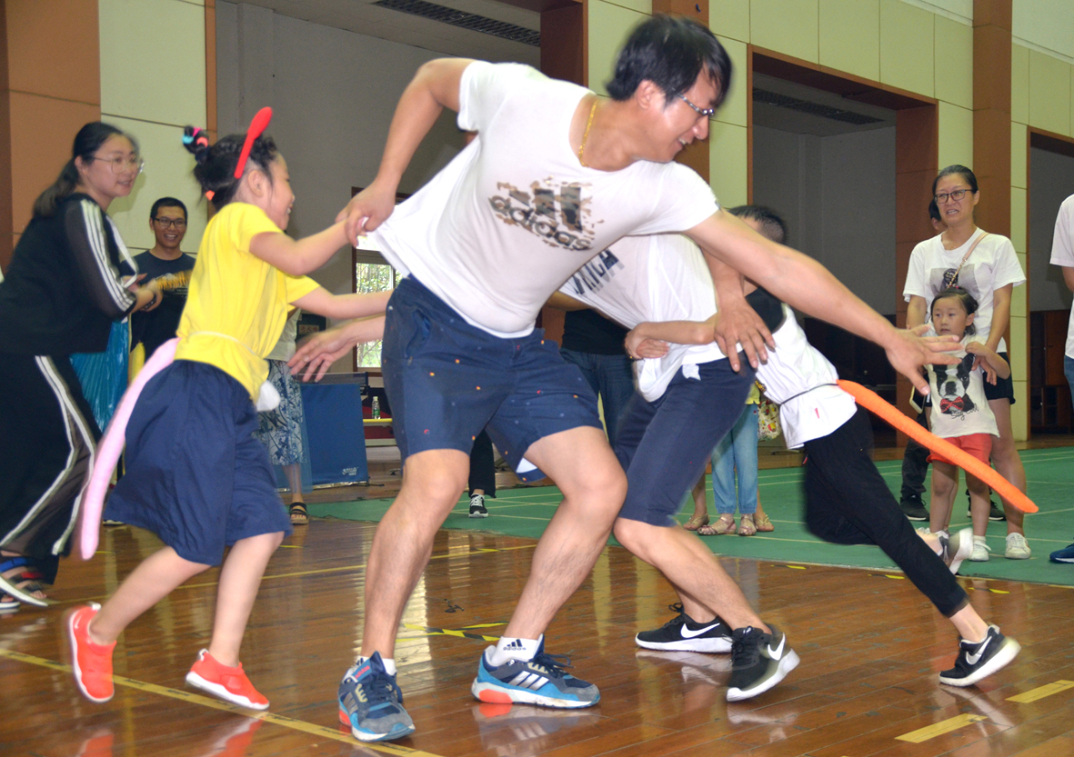 兩人三足、猴子倒掛、踩石頭過河、耳語傳話、揪尾巴、小小纖夫……在快節(jié)奏的生活中,難得的親子趣味運動時光讓江山股份文體活動中心充滿了歡聲笑語。