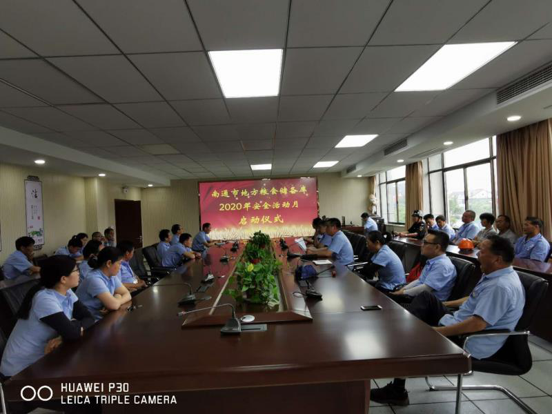 為認真貫徹落實國家、省、市關于安全生產工作的決策部署,進一步樹牢安全發(fā)展理念,提升全員安全文明素質,防范遏制安全事故發(fā)生。6月5日下午,南通市地方糧食儲備庫組織庫區(qū)全體人員以組織學習“習近平總書記關于安全生產重要論述6大要點”、學習貫徹上級部門“安全生產月”活動工作部署和要求、全面布置“安全生產月”活動計劃等形式啟動2020年“安全生產月”活動。