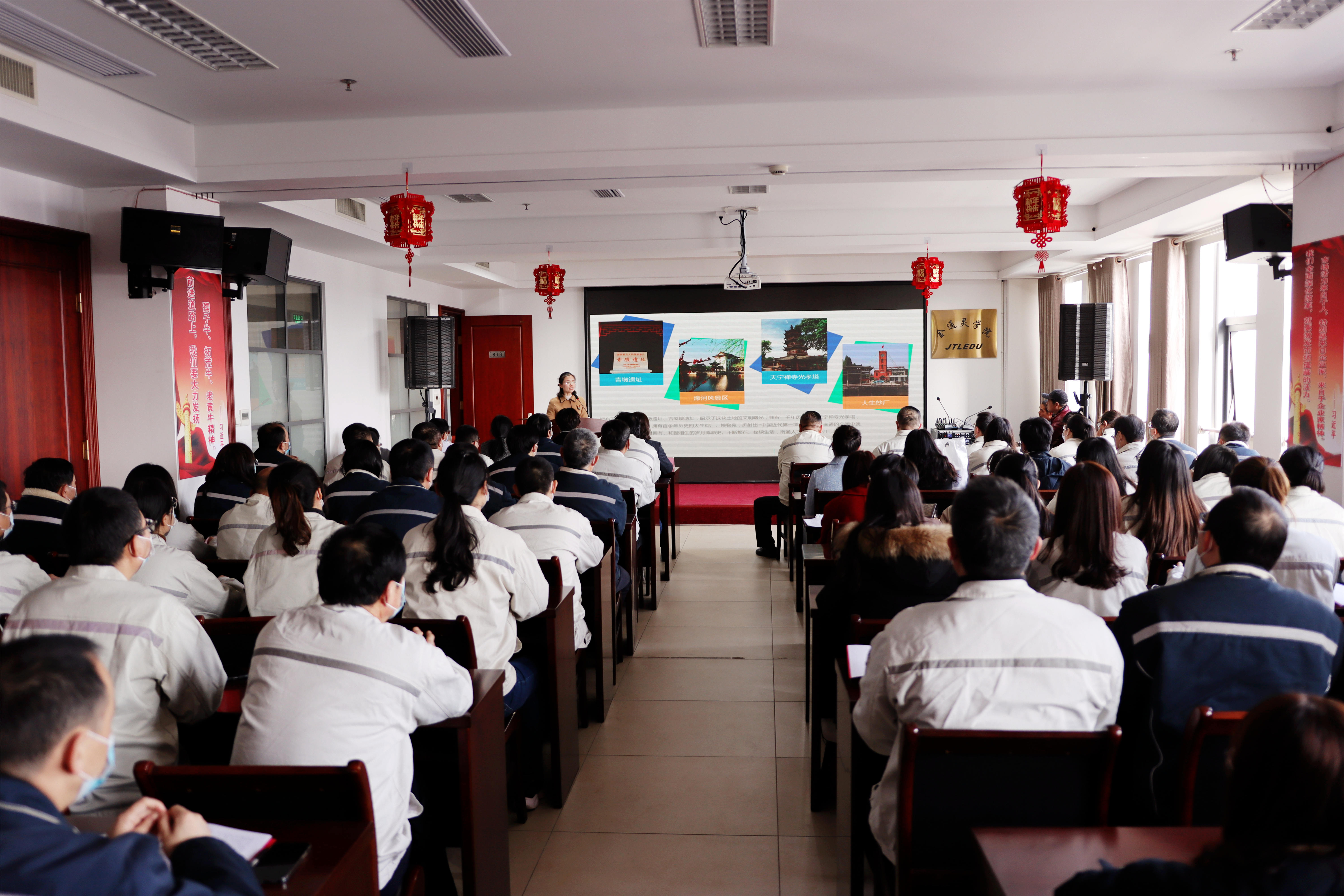紅色的燈籠帶著節(jié)日的余溫與暖心的“習(xí)語金句”一起裝點著會場的氛圍,臺上宣講員循循善誘,為金通靈職工帶來滿滿理論“干貨”;臺下聽眾聚精會神,給宣講員們送去陣陣掌聲。2月23日下午,崇川區(qū)“學(xué)習(xí)貫徹習(xí)近平總書記視察江蘇重要講話精神”宣講團首場宣講活動在金通靈學(xué)院內(nèi)成功舉辦。