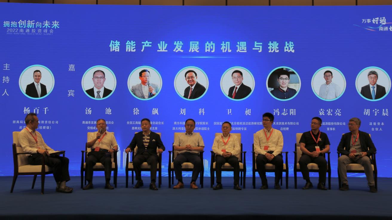 市委常委、常務副市長陸衛(wèi)東在致辭中提到,希望新能源領域相關企業(yè)在產業(yè)項目、技術研發(fā)應用、數據共建共享等領域與南通開展更加深入廣泛的交流合作,將更多先進技術、特色項目和優(yōu)質資本引入南通、扎根南通,共同打造新能源產業(yè)發(fā)展的新藍海,攜手共同譜寫新能源產業(yè)發(fā)展的嶄新篇章。 活動現場,南方科技大學創(chuàng)新學院院長、澳大利亞國家工程院外籍院士劉科就“能源轉型及碳中和的現實與路徑”、國家能源集團北京低碳清潔能源研究院國家特聘專家衛(wèi)昶就“雙碳目標下的能源技術創(chuàng)新和產業(yè)發(fā)展趨勢”分別作主旨演講。如皋市、如東縣、南通經濟技術開發(fā)區(qū)、通州灣示范區(qū)相關負責人進行了板塊推介。圓桌論壇環(huán)節(jié),招商局資本副總經理楊百千、沃太能源股份有限公司董事長袁宏亮等八位來自政府、企業(yè)、投資機構的嘉賓圍繞“儲能產業(yè)發(fā)展的機遇和挑戰(zhàn)”相關主題發(fā)表意見論述觀點,介紹新能源產業(yè)的發(fā)展現狀,并暢想儲能行業(yè)未來發(fā)展的技術路線趨勢等,為南通新能源產業(yè)發(fā)展指點迷津。