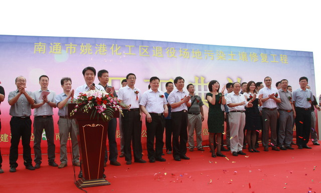 2013年8月30日上午9點18分,政府重視、民眾關心的南通市姚港化工區(qū)退役場地污染土壤修復工程開工儀式在姚港路35號舉行。本次工程修復范圍包括原南通農藥廠、樹脂廠、染化廠生產廠區(qū)及姚港河部分河段,修復土地面積約550畝,修復土方量28萬立方米。根據(jù)前期修復調查評估,修復地塊的污染物主要以揮發(fā)、半揮發(fā)農藥、有機污染物為主,修復工作將使用熱解析、化學氧化等多種成熟技術。修復工期一年半,修復達標后再進行二次開發(fā)。