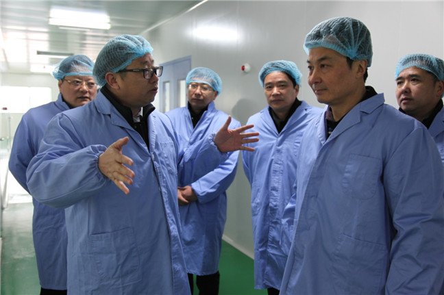 2月16日,市政府徐新民副市長、王國平副秘書長一行來南通產(chǎn)業(yè)控股集團有限公司調(diào)研,徐副市長現(xiàn)場察看了產(chǎn)控集團投資企業(yè)精華制藥的生產(chǎn)車間,并聽取了精華制藥公司生產(chǎn)情況匯報。產(chǎn)控集團董事長杜永朝、總經(jīng)理陸強新等陪同調(diào)研。